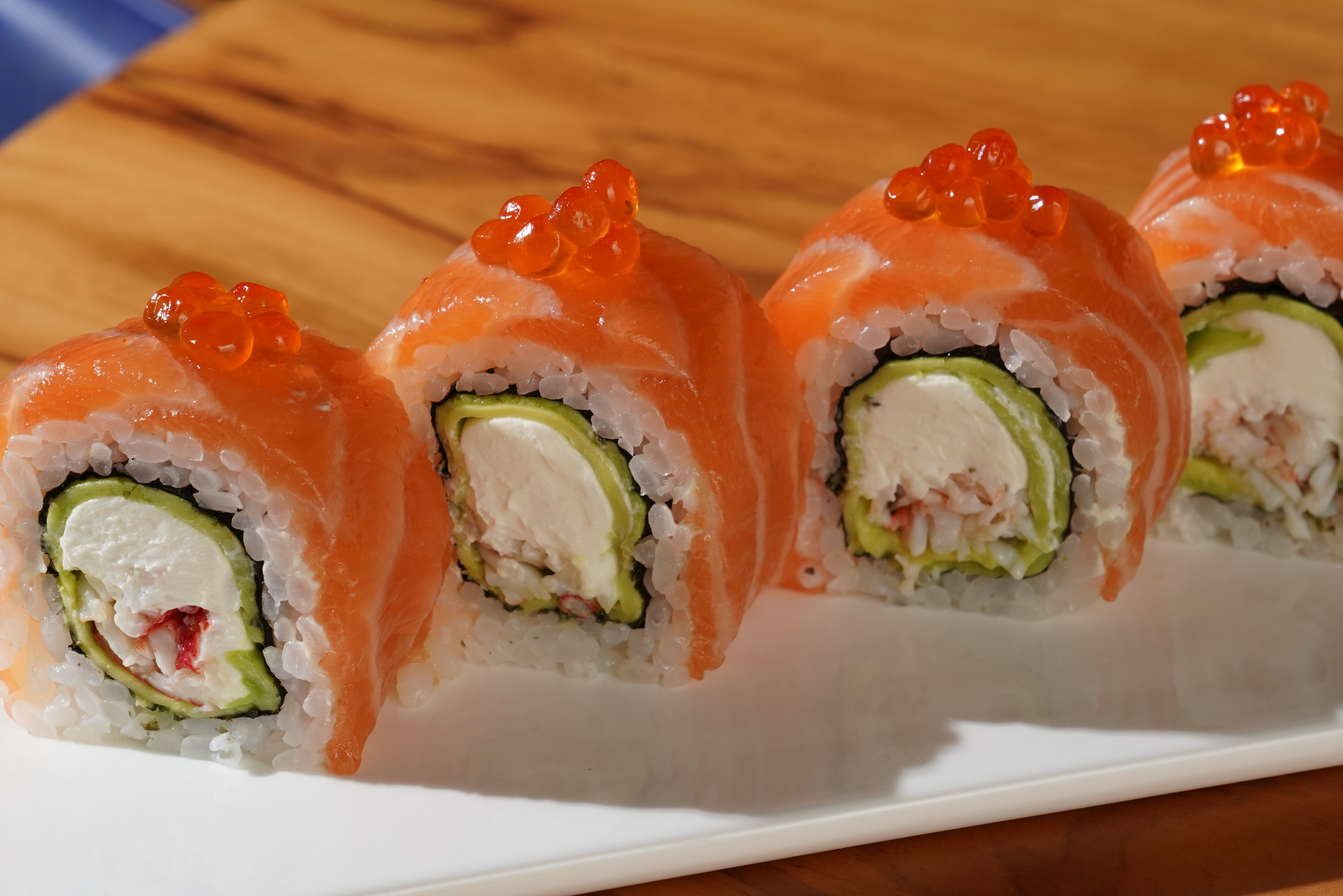 Краб,лосось,красная икра,рис,авокадо,сливочный сыр.